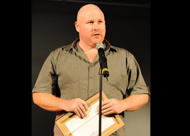Caroline Kaspar (dance captain) collecting the Best Musical Award.
